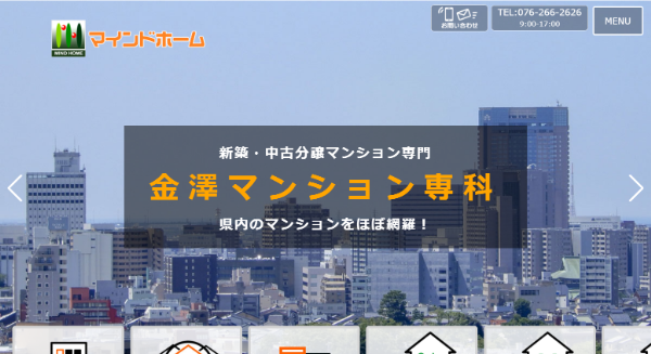 マインドホームは、不動産の売買や賃貸の仲介など、不動産取引全般を取り扱っています。その中でとりわけ金沢市内のマンションに注目した「金澤マンション専科」というサービスも提供しています。金沢は比較的分譲マンションが少なく、売却にもこの土地特有の戦略が必要。金沢のマンションを専門とする同社ならではのノウハウに期待が持てます。