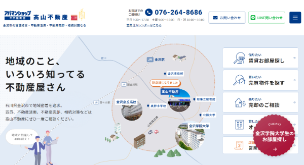 金沢市に店舗を構えている有限会社 高山不動産の口コミ情報や特徴などについて解説します。
